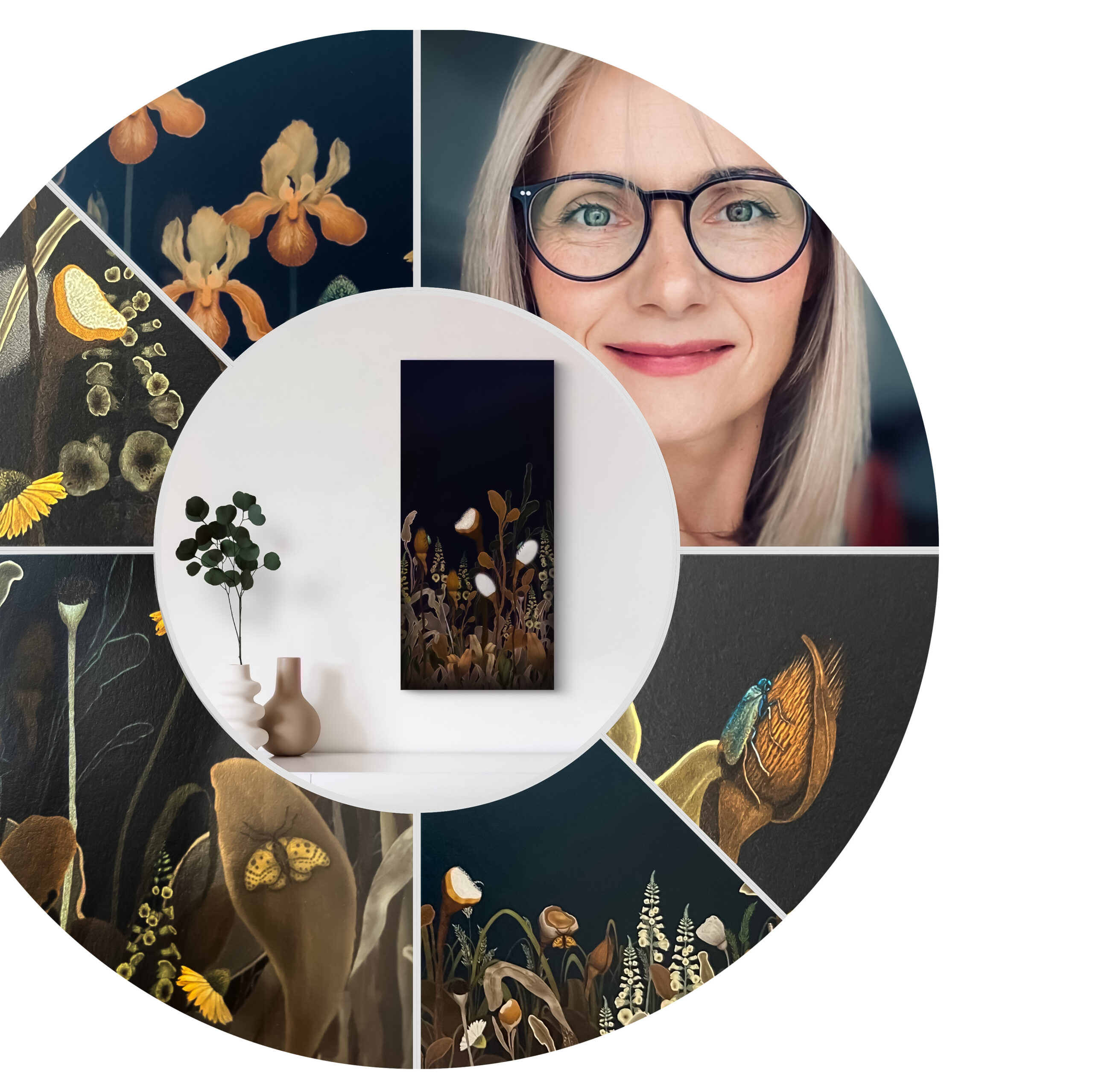 In meinen Arbeiten verbinde ich mein gestalterisches Gespür aus der Innenarchitektur mit meiner Liebe zur Natur und meinem Blick für Stimmungen und Details. Ich glaube daran, dass Kunst nicht laut sein muss — sie darf still berühren.